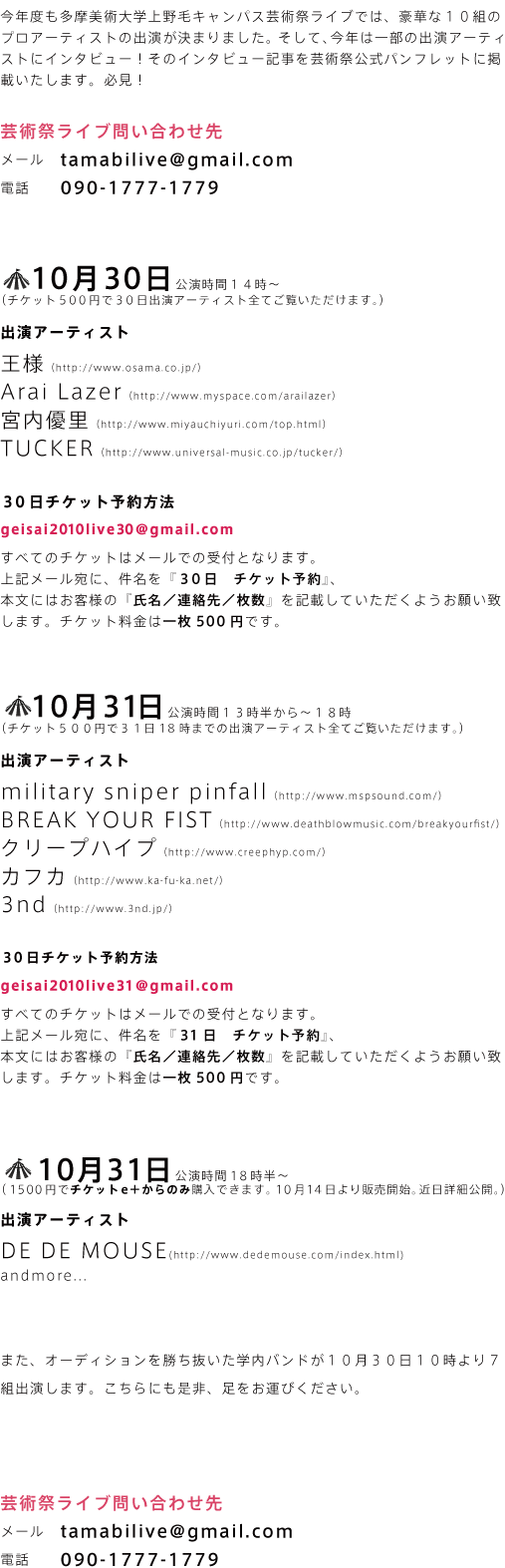 http://www.geisai-tamabi.com/2010/live.html
