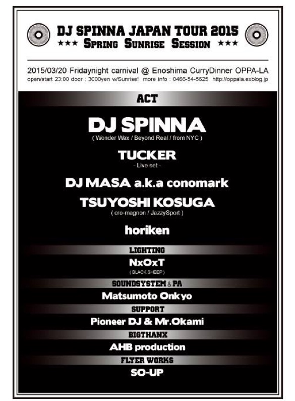 DJスピナ来日! japan tour 03/20 江ノ島オッパーラにてTUCKER出演します!